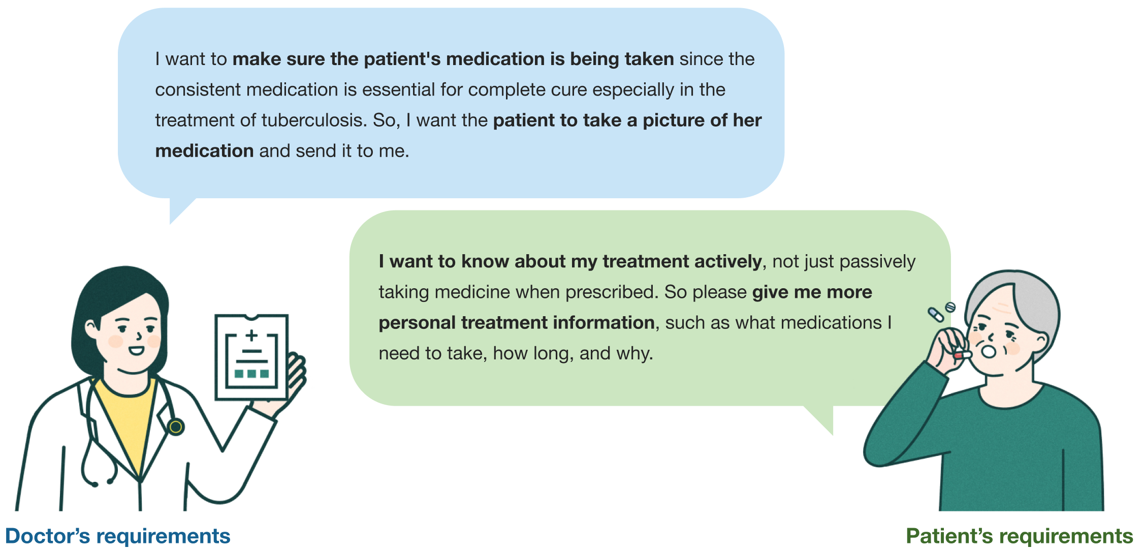 I identified a difference between the requirements of doctors and patients to achieve the goal of tuberculosis treatment. I considered how to reconcile these two needs.