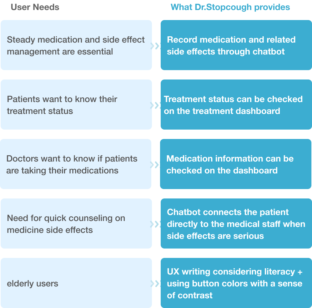 Korea has the highest tuberculosis incidence rate among OECD countries. By developing a chatbot using KakaoTalk, the most actively used messenger app in Korea, we help elderly patients easily access information about tuberculosis and receive real-time counseling. In addition, through chatbots, medication management and side effects management in tuberculosis treatment are supported through reminders and encouragement.
