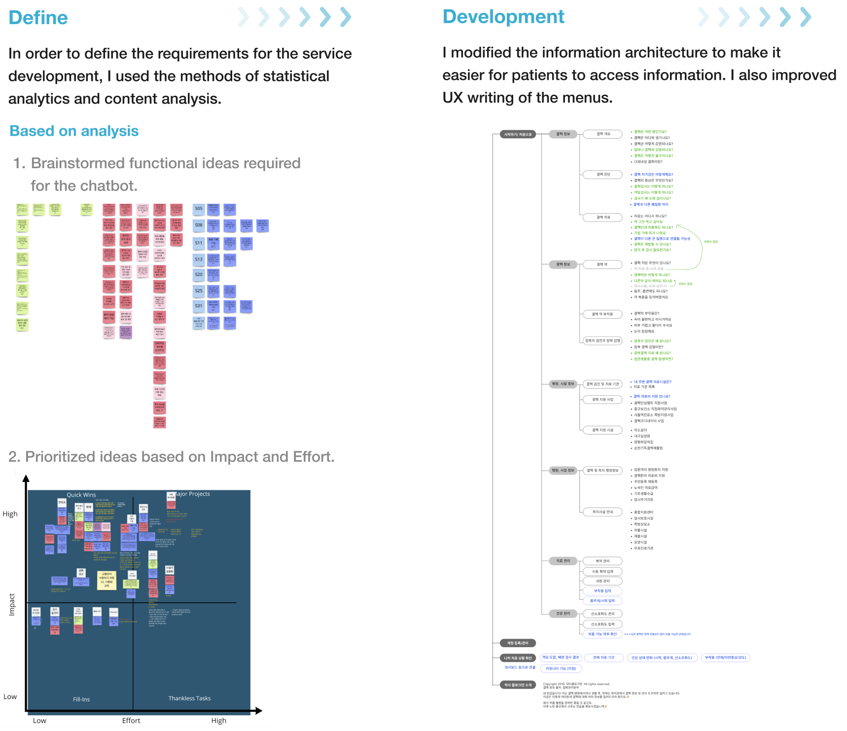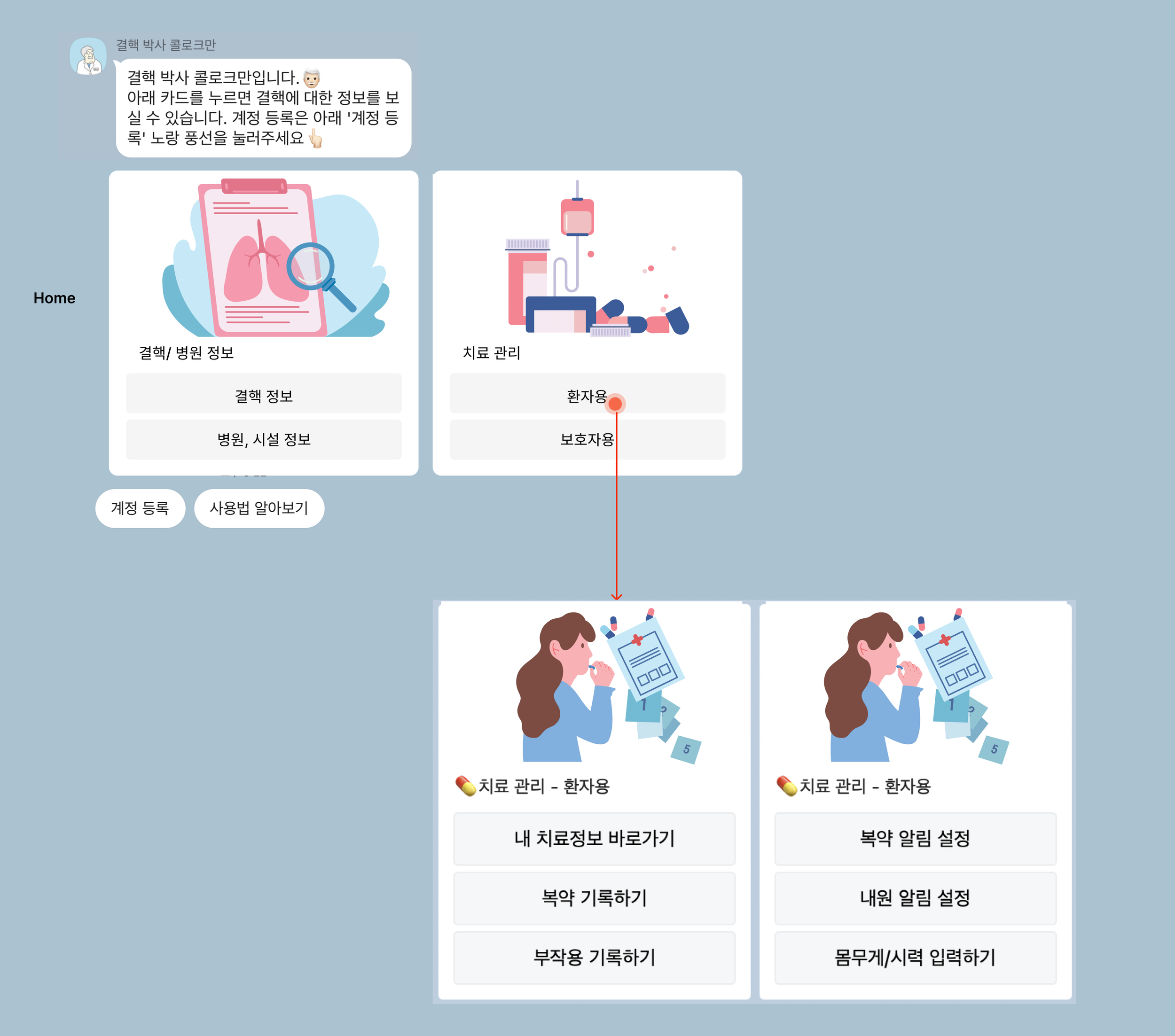 The UX writing of the sub-menu title was unified in a tone in which ‘the patient asks the doctor a question’. We want to provide user-friendly UX writing in the process of using the chatbot. (Example: Existing 'Avoid going out at the beginning of treatment' -> After correction, 'It's tuberculosis, can I go out?')
