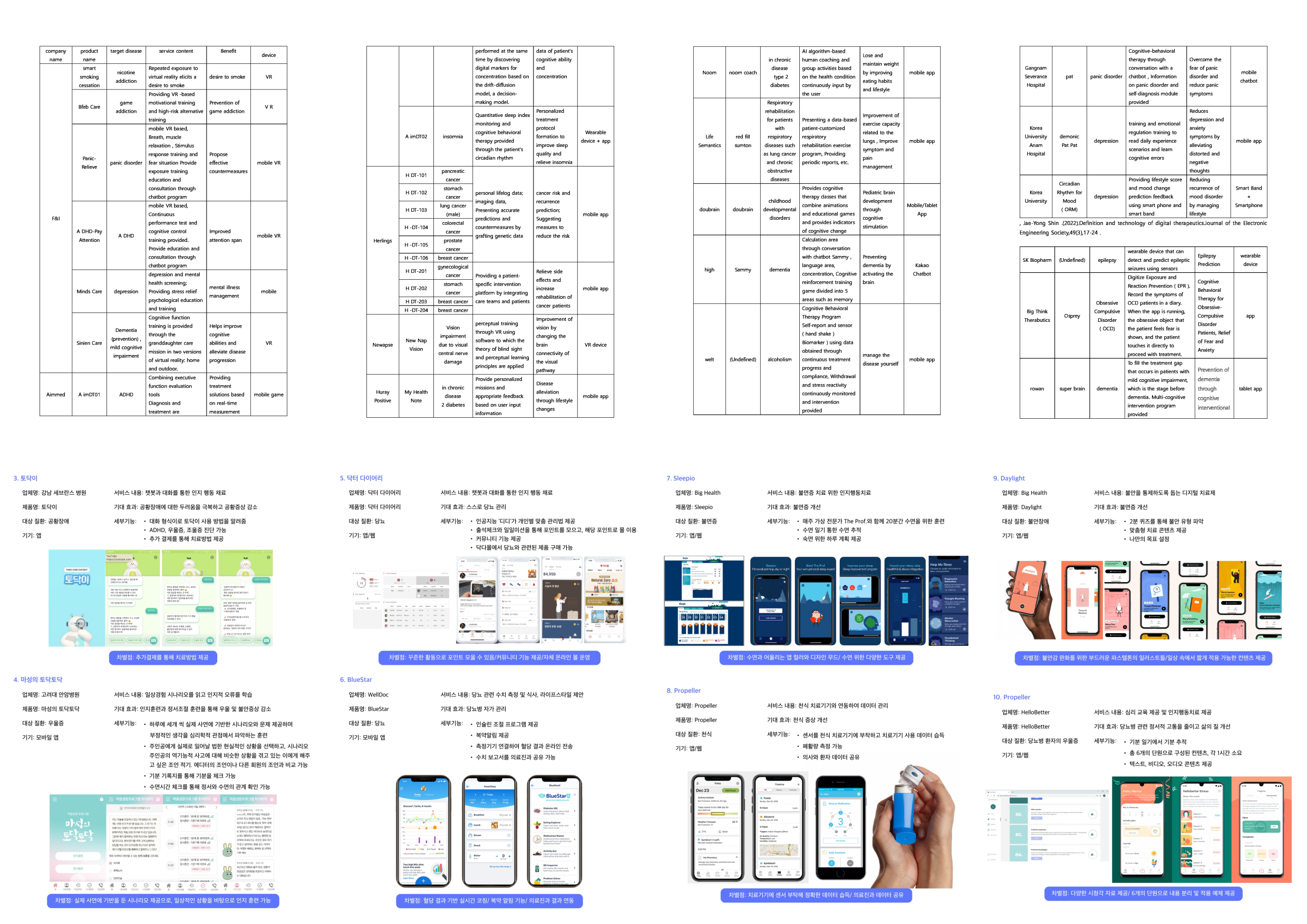 I conducted an investigation on digital therapeutics that have been launched in the Korean and global markets. The analysis examined the targeted diseases, features provided for treatment, and the user experience design.