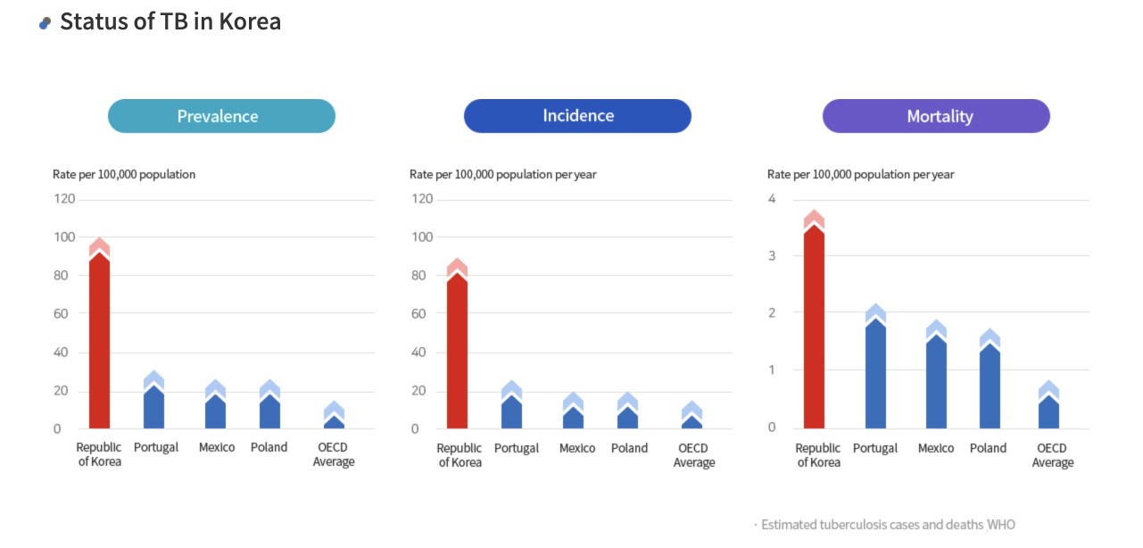 Korea is ranked at No.1 in TB incidence, prevalence and mortality among the 34 OECD countries.