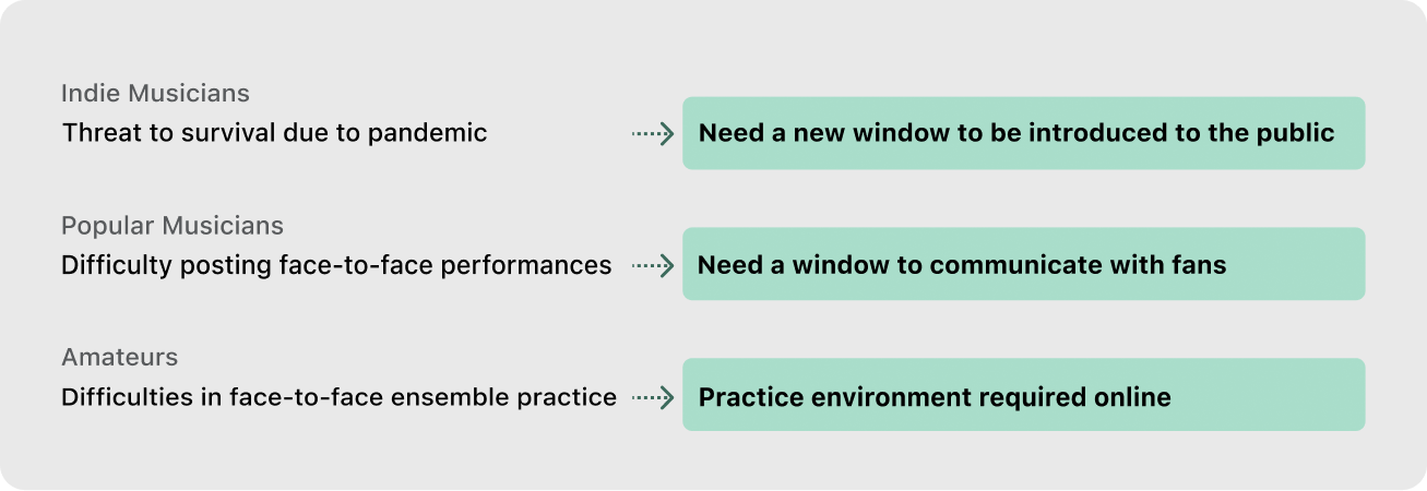 Who have a need for new music activities online : 4 people / UX Designers : 4 people