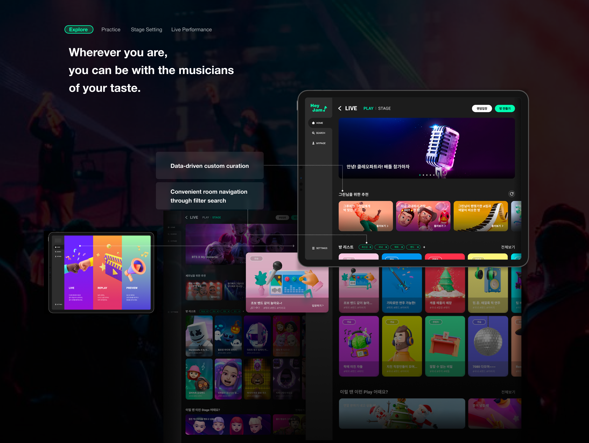 HeyJam is an Online Ensemble service using Metaverse. HeyJam will help restore the social bond lost due to the pandemic and help musicians who have lost the musical connection and stages.
